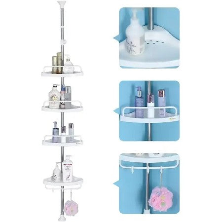 Etajeră Colț pentru Baie/Duș cu 4 Rafturi, Suport Prosop și Cărlige, Înălțime Reglabilă Max. 3.2 Metri, AlbPret normal 34,99 lei