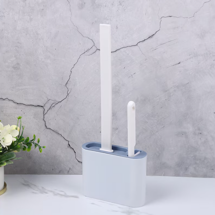 Set Perie WC din silicon pentru toaleta, AT PERFORMANCE®, Cap Flexibil, fixare pe perete, cu recipient din plastic, aspect modern, AlbPret normal 17,99 lei