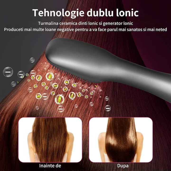 Perie de indreptat parul, AT PERFORMANCE®, 3 trepte de temperatura 60-180°C, functii de incalzire si indreptare, invelis ceramic, Purpuriu gri.
