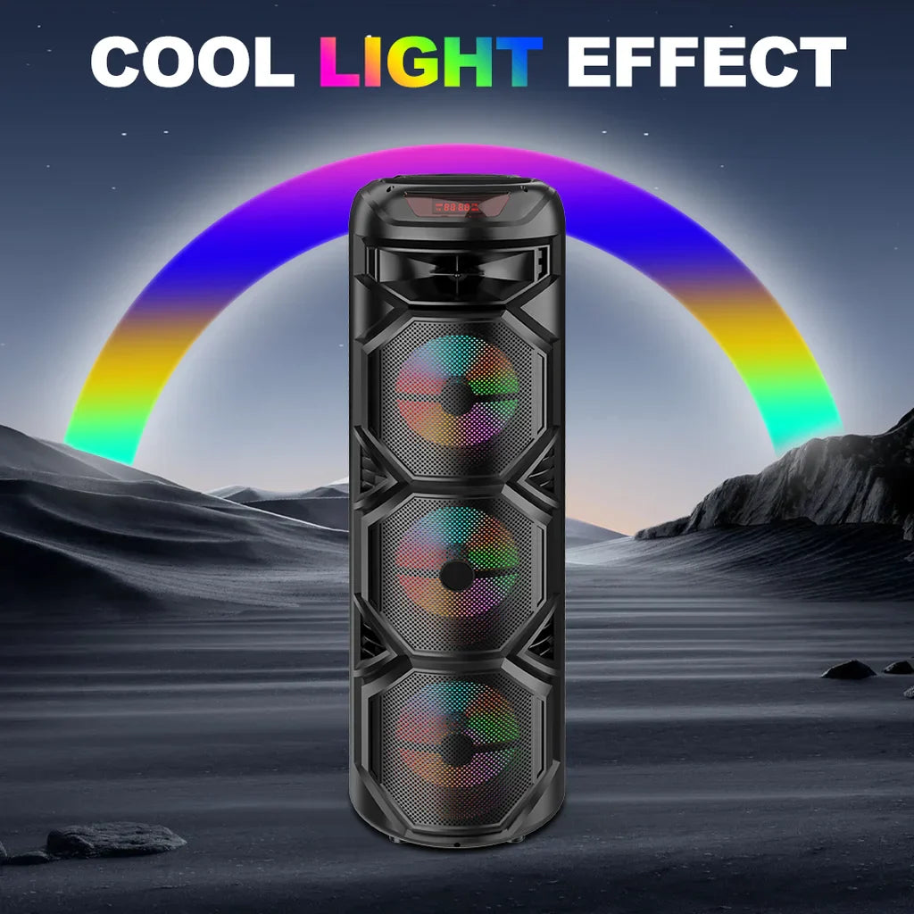 Transformă orice loc într-o petrecere adevărată cu Sing-e ZQS8301, boxa portabilă de putere mare, echipată cu lumini LED colorate și funcții perfecte pentru karaoke, evenimente, fitness, prezentări sau petreceri în aer liber. Cu un design modern, trei difuzoare de 8 inch și un sunet puternic, acest model este alegerea ideală pentru iubitorii de muzică și distracție.