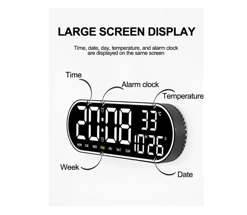 Acest ceas digital de perete cu LED este un produs modern si elegant, care ofera multe functii practice.