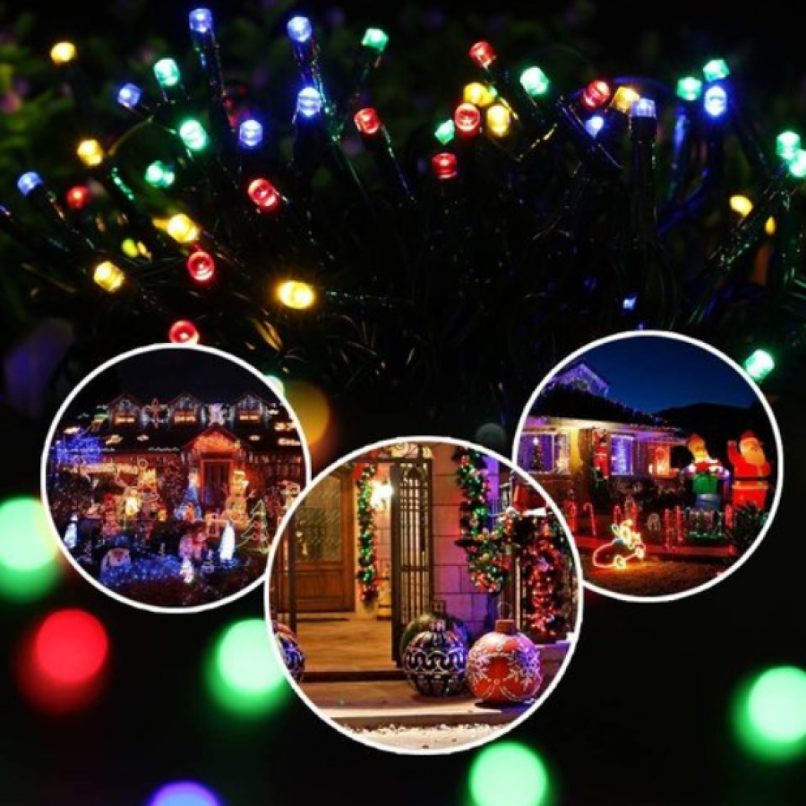 liniară! Cu o lungime de 100m și 8 jocuri de lumini interschimbabile, această instalație oferă posibilitatea de a crea diverse efecte luminoase pentru un decor festiv, atât în interiorul casei, cât și în aer liber. Cu un fir negru și lumini multicolore, este alegerea ideală pentru a înfrumuseța bradul de Crăciun, pereții, feroneria sau grădina.