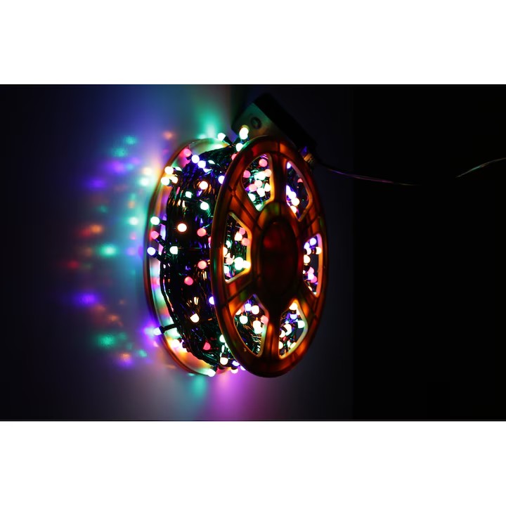Adaugă un strop de magie sărbătorilor tale cu această rola de instalație de Crăciun liniară! Cu o lungime de 100m și 8 jocuri de lumini interschimbabile, această instalație oferă posibilitatea de a crea diverse efecte luminoase pentru un decor festiv, atât în interiorul casei, cât și în aer liber. Cu un fir negru și lumini multicolore, este alegerea ideală pentru a înfrumuseța bradul de Crăciun, pereții, feroneria sau grădina.