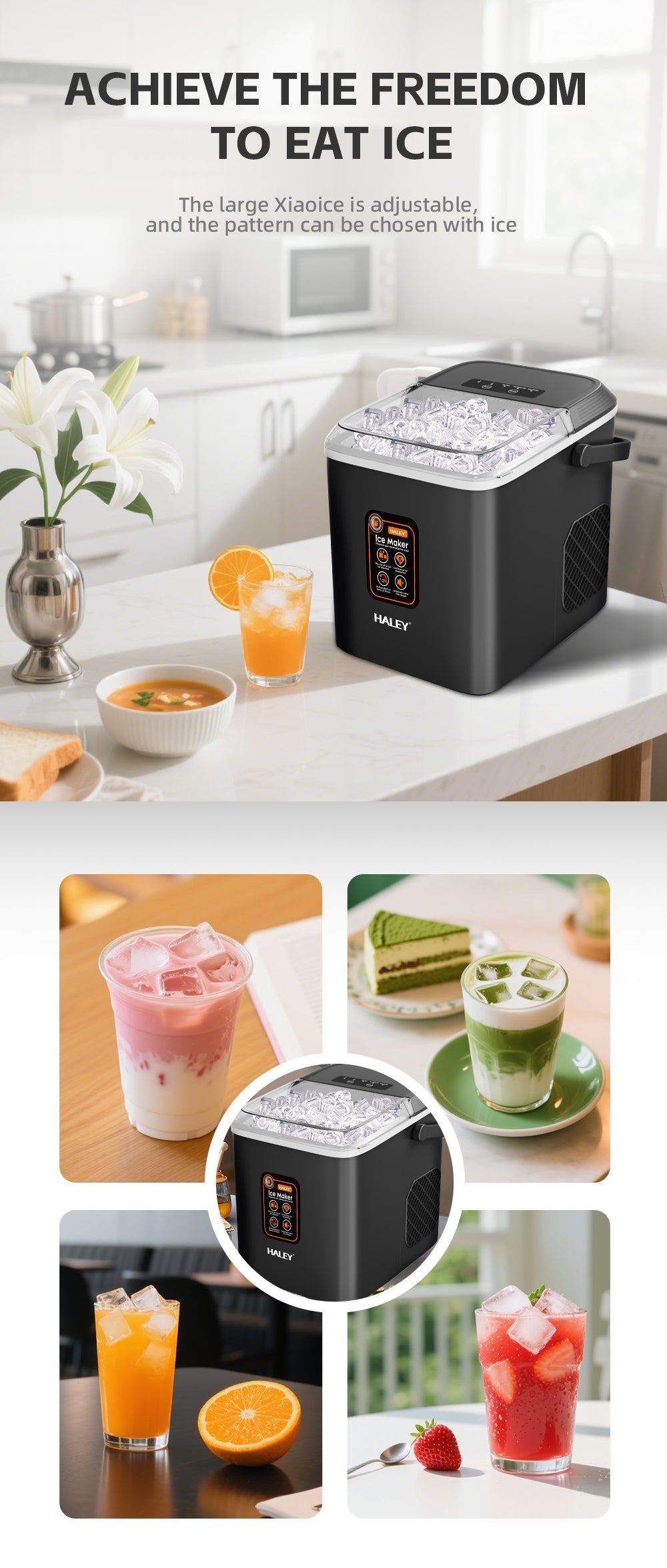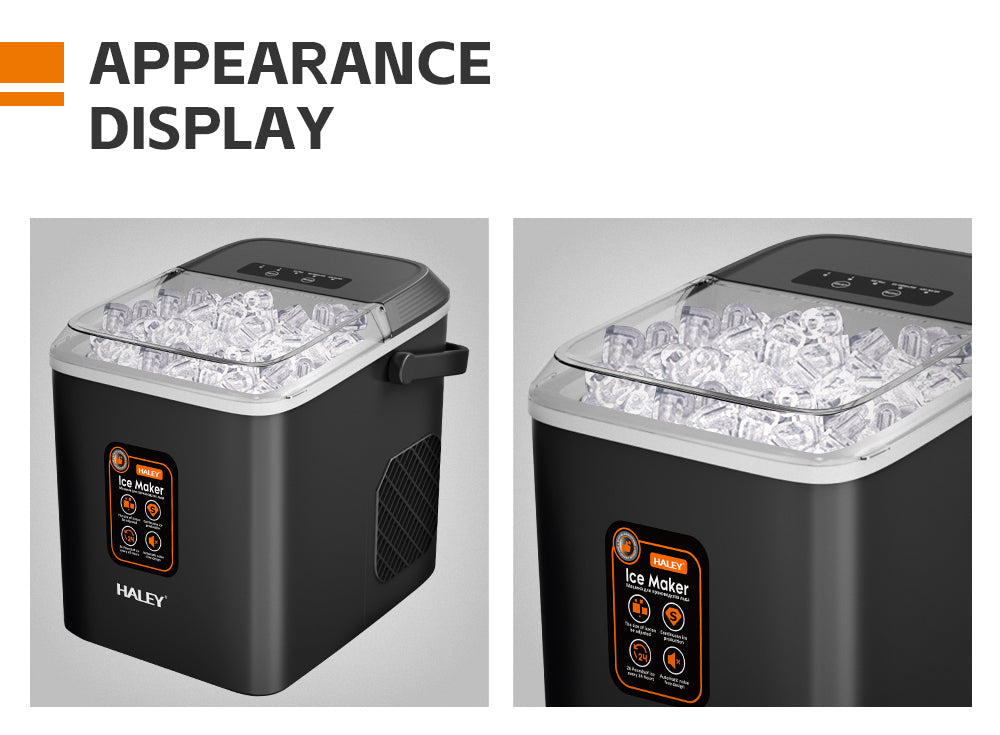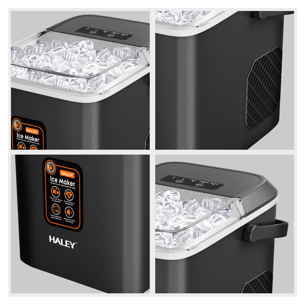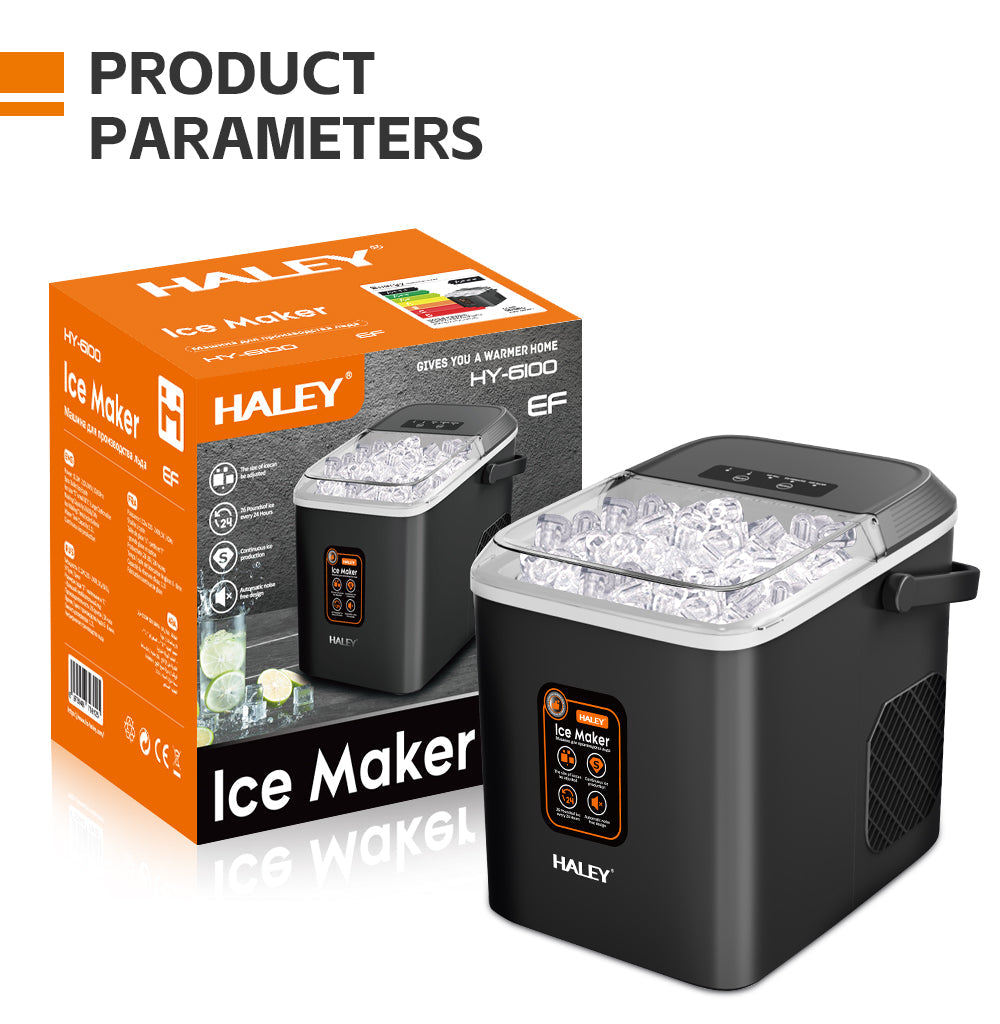 Mașină de Gheață HALEY, 12 kg/24h, Compactă, Avertizare Gheață Plină și Apă Joasă, Curățare Automată, 112W