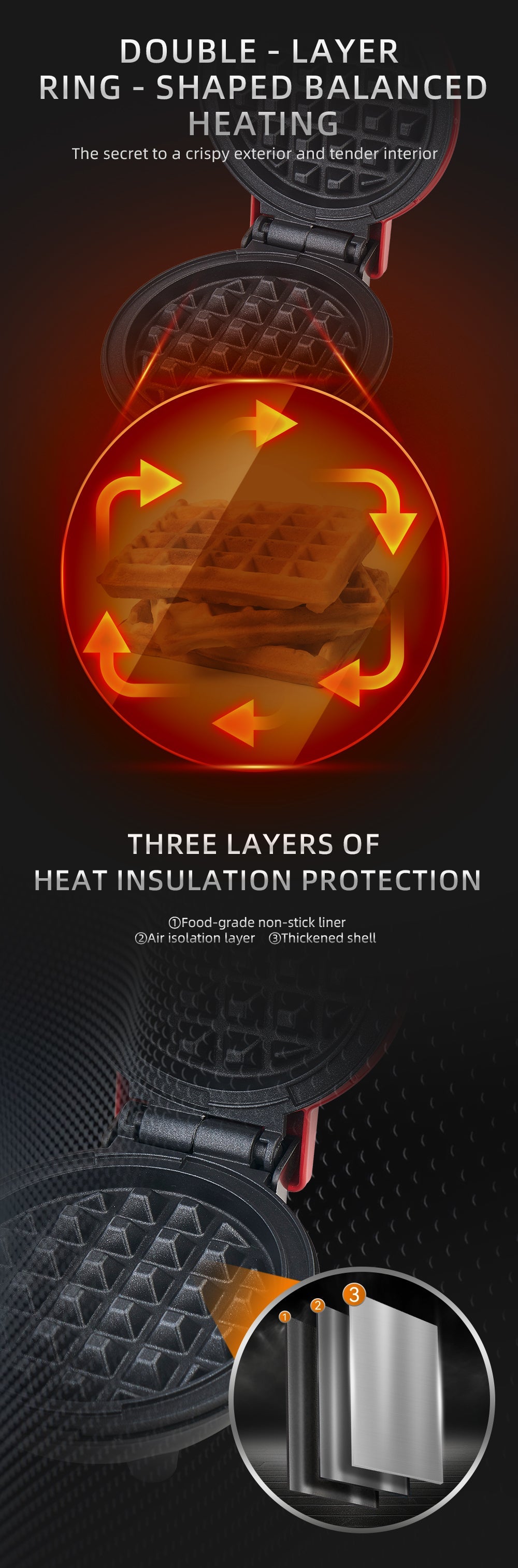 Aparat Mini Waffe HALEY®, 800W, Plăci Antiaderente, Indicator Luminos, Design Compact, Roșu
