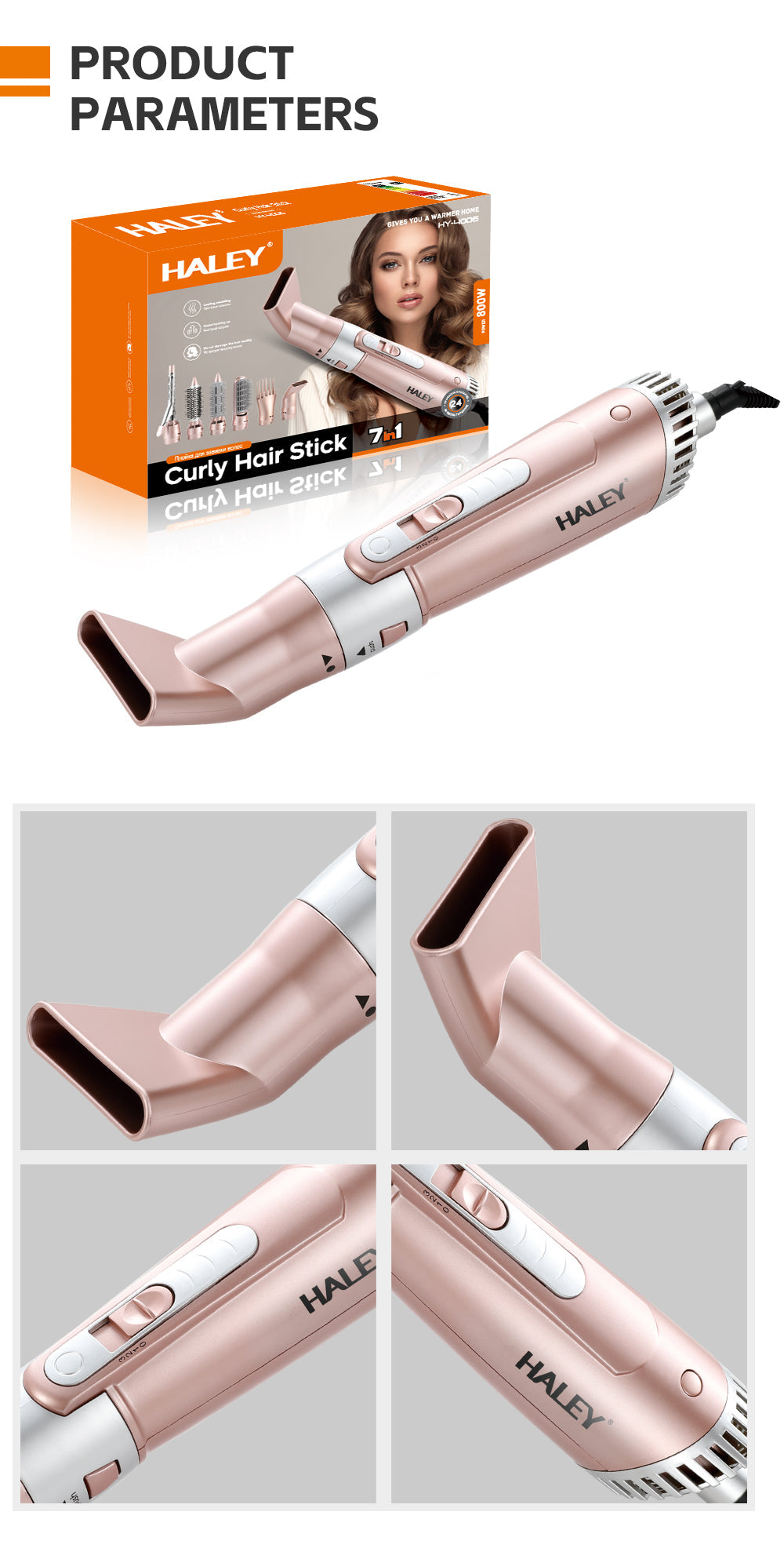 Uscător de Păr 7 în 1 HALEY – Ondulator Multifuncțional cu Ionizare, Protecție Termică, 800W, Accesorii Incluse, Ideal pentru Coafare Profesională Acasă