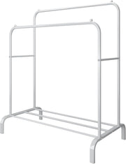 Un suport dublu pentru haine in picioare pentru a va mentine organizat. Are spatiu pentru a agata umerase, haine sau jachete libere si un suport pentru pantofi.