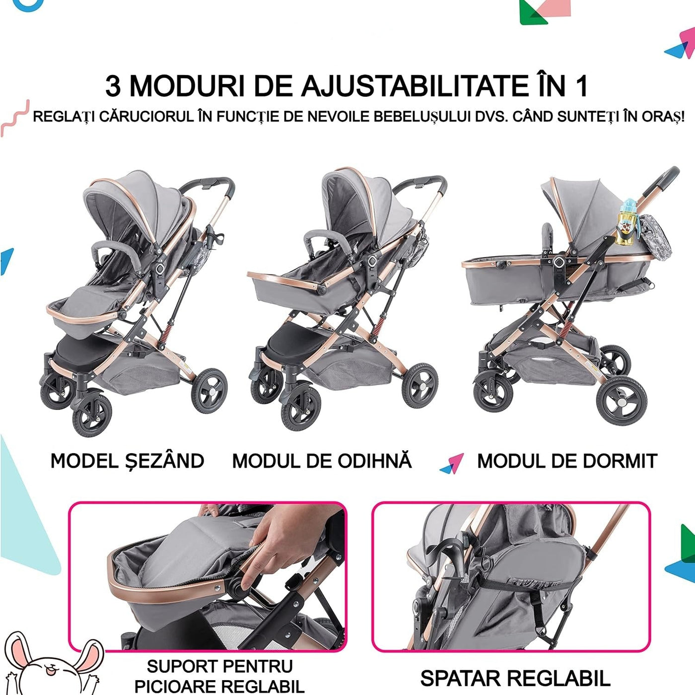 Carucior, 2 in 1 KIDOO® – Cărucior Pliabil cu Fața Inversă pentru Bebeluși cu Diverse Moduri, Cărucior Reglabil și Culisant