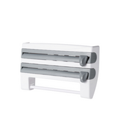 Dozator de Folie Aluminiu, Folie Plastic si Prosoape Hartie,At Performance, 3 in 1, Cutite Incluse si Kit Montaj Perete, 39 x 24 x 10 cm, Alb-gri