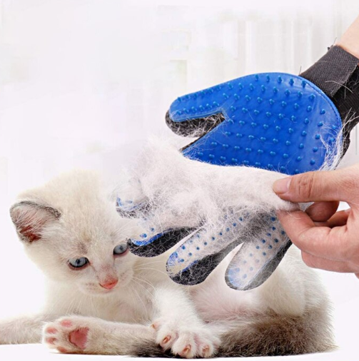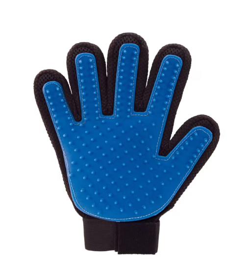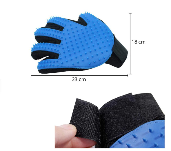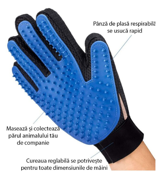 Manusa-perie de ingrijire caini, pisici si alte animale de companie, At Performance, pentru mana dreapta, Albastru cu negru