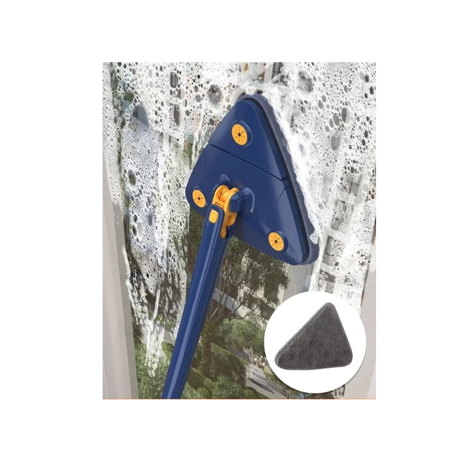 Mop triunghi extensibi At Performance, curata suprafete multiple gresie, podea, pereti, 360° de rotatie, Maner Telescopic, Albastru