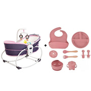 Pachet Premium Roz – Relaxare Inteligentă & Diversificare Completă | Balansoar 5 în 1 Mastela + Set 10 Piese Hrănire Silicon