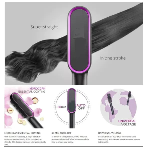 Perie electrica AT PERFORMANCE din ceramica pentru indreptat parul, temperatura reglabila, 5 trepte, max. 190 ° C, pe par uscat fara efect de electrizare