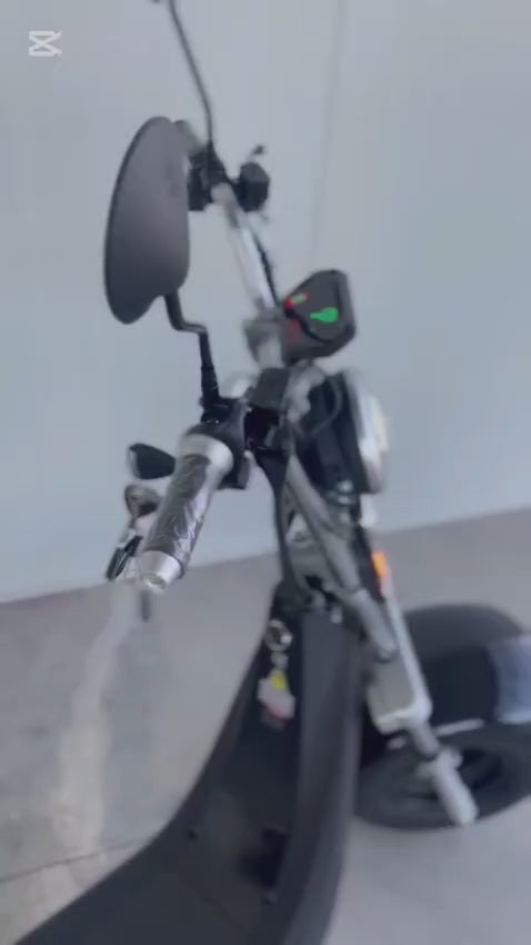Descoperă libertatea deplasării urbane cu Scuterul Electric pentru 2 persoane, creat pentru confort, eficiență și mobilitate fără stres! Acest model vine limită din fabrică la 25 km/h, ceea ce înseamnă că poate fi condus legal fără permis de conducere (conform legislației în vigoare pentru trotinete electrice și mopede sub această limită de viteză).