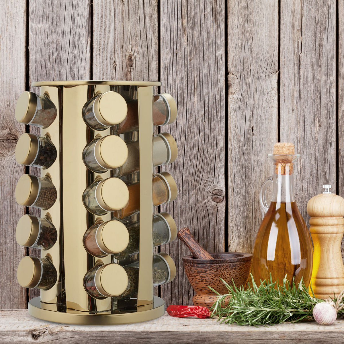 Set 20 de recipiente AT PERFORMANCE®, pentru condimente cu suport rotativ, inox, 33,5 x 23 x 23 cm.