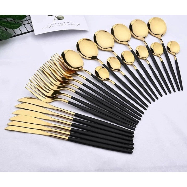 Set de tacamuri moderne AT PERFORMANCE®, 24 de piese, negru si auriu lucios, 13-21 cm.