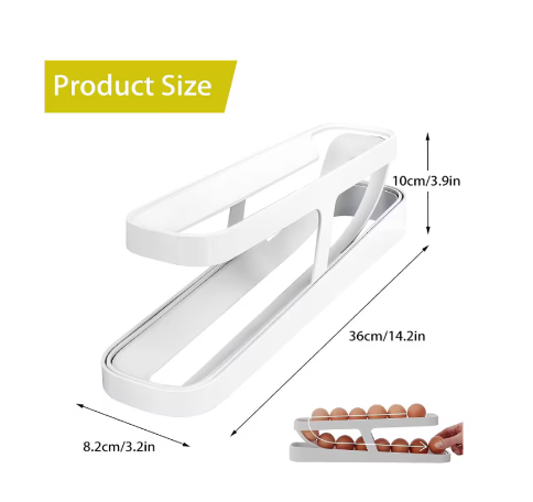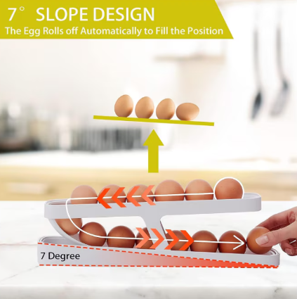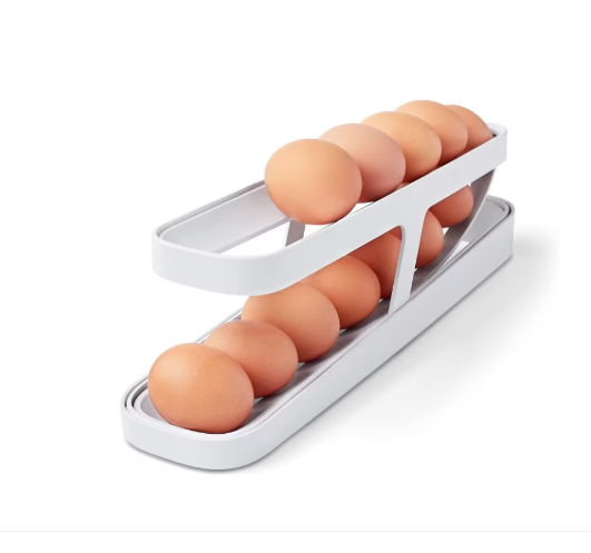 1.Rulouri cu oua: designul cu inclinare gravitationala face distribuitorul de oua mai confortabil. O pista inclinata elibereaza ouale individual. Cand scoateti oul, oul se rostogoleste imediat din sina.