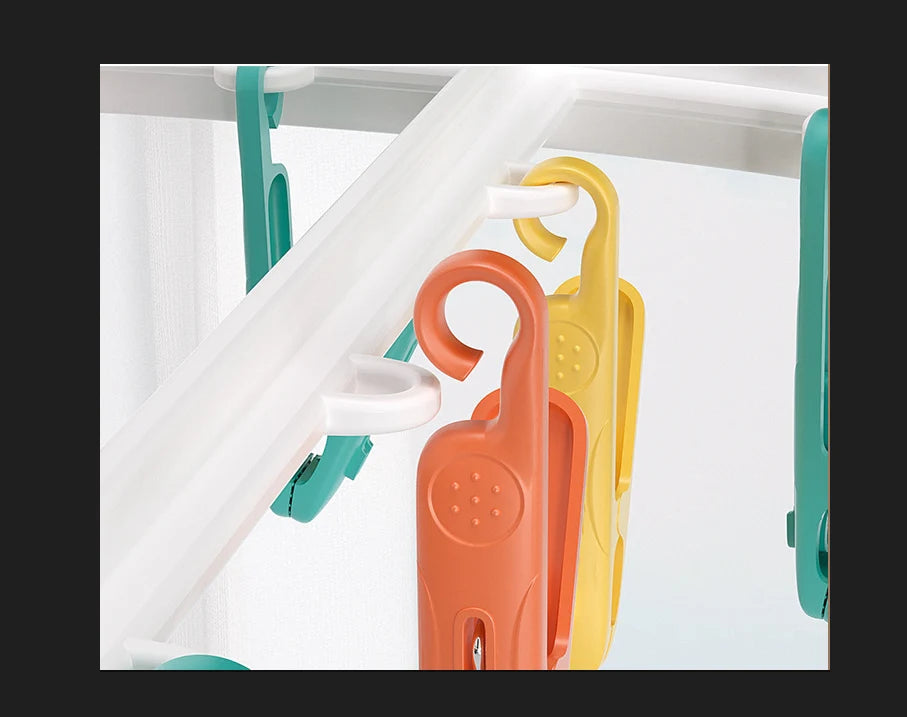 【Materiale de inalta calitate】 Umeras de uscare pentru sosete din plastic de inalta calitate si arc de lunga durata, este extrem de robust. Cele 16 bucati de cleme de inalta elasticitate tin articolele strans. Agrafe din plastic cu dinti cu granulatie fina, antiderapante, dar care nu vor lasa urme pe hainele tale frumoase. Este ideala pentru gospodine!